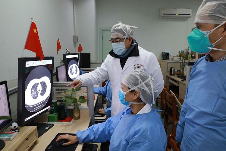 Nhân viên y tế kiểm tra hình ảnh chụp CT của một bệnh nhân tại Bệnh viện Trung Nam của Đại học Vũ Hán ngày 2/2. Ảnh: Chinadaily/Reuters