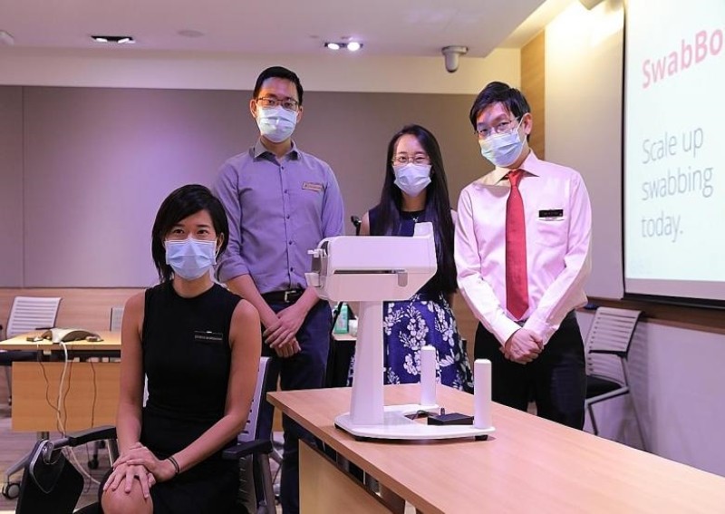 Có tên gọi SwabBot, mẫu robot này có kích thước 35cm x 40cm và cao 49cm, được phát triển bởi các bác sĩ lâm sàng thuộc Trung tâm Ung thư Quốc gia Singapore (NCCS) và Bệnh viện Đa khoa Singapore (SGH) cùng Công ty robot y tế Biobot.