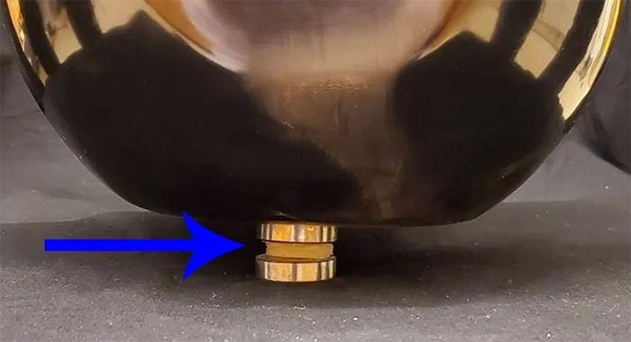 Sụn hydrogel (theo dấu mũi tên) được thử nghiệm độ bền chắc bằng sức nặng của một quả tạ 45kg. (Ảnh: ScienceAlert.com).