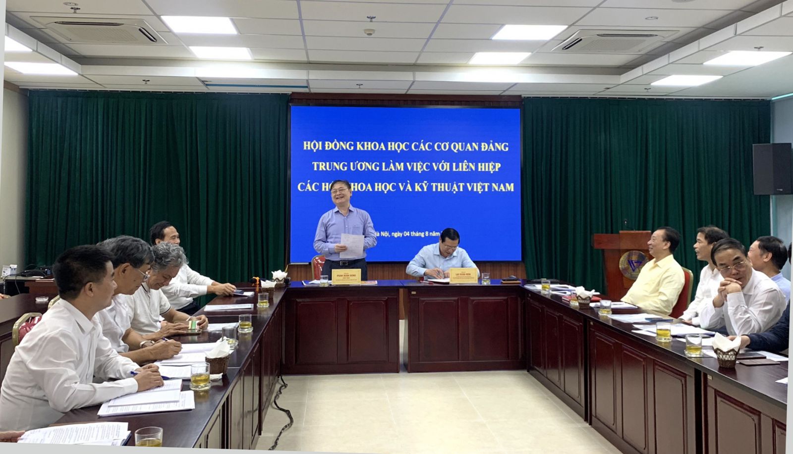 Tham dự buổi làm việc, phía Hội đồng Khoa học các cơ quan Đảng Trung ương (Hội đồng) có các đồng chí: Lại Xuân Môn, Ủy viên Ban chấp hành Trung ương Đảng, Phó trưởng Ban Thường trực Ban Tuyên giáo Trung ương, Chủ tịch Hội đồng; Vũ Thanh Mai, Phó trưởng Ban Tuyên giáo Trung ương; các Phó Chủ tịch Hội đồng và Văn phòng Hội đồng.