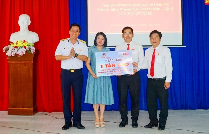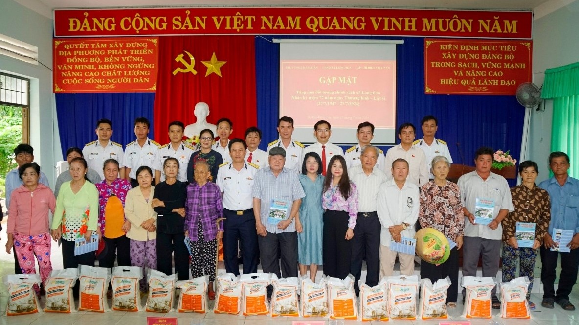 Với truyền thống “uống nước nhớ nguồn”, đoàn công tác của Tạp chí Biển Việt Nam do đồng chí Hoàng Thị Huệ, Tổng Biên tập làm trưởng đoàn và đoàn công tác của Bộ Tư lệnh Vùng 2 Hải quân do Đại tá Trần Mạnh Chiến, Bí thư Đảng ủy, Chính ủy Vùng làm trưởng đoàn, phối hợp với chính quyền xã Long Sơn, tổ chức gặp mặt và tặng quà cho các gia đình chính sách trên địa bàn xã.