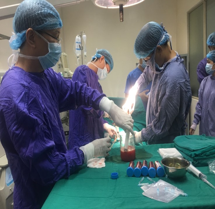 Nhóm nghiên cứu đang làm việc trong phòng mổ vô trùng