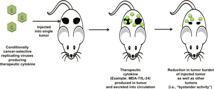 Nhưng nếu là tế bào bị ung thư, MDA-7/IL-24 gây ra tổn thương do stress oxy hóa (mất cân bằng oxy hóa), khiến tế bào chết, không chỉ trong khối u nguyên phát mà còn cả các di căn xa - nguyên nhân gây tử vong của 90% bệnh nhân.