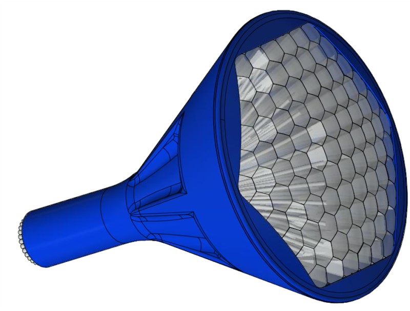 Nội dung chính của sáng chế là đề xuất một thiết kế thấu kính được kết nối đơn giản với sợi quang. Thấu kính này có dạng tương tự như thấu kính nhựa sử dụng trong các đèn LED chiếu sáng, khác biệt ở chỗ thay vì tối ưu ánh sáng đi ra từ bóng LED thành các chùm gần song song, thấu kính tối ưu ánh sáng đi vào và chuyển thành các chùm gần song song để được dẫn bằng sợi quang.