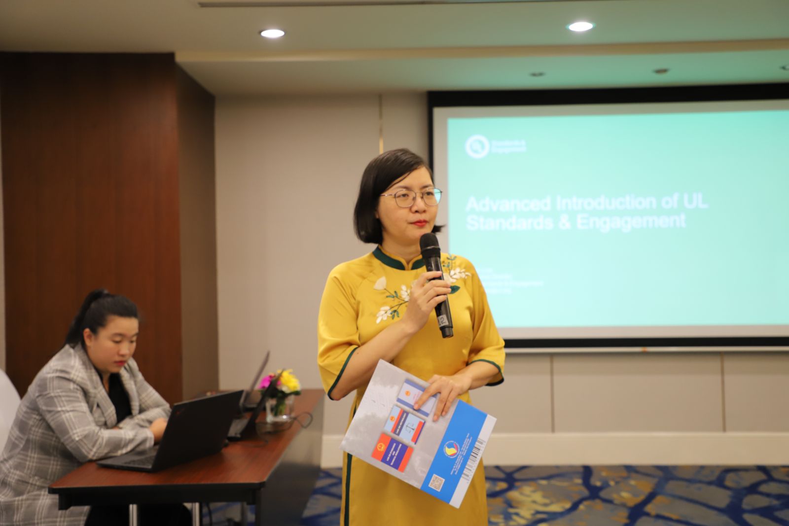 Để giúp các chuyên gia xây dựng tiêu chuẩn Việt Nam hiểu hơn về hoạt động xây dựng tiêu chuẩn UL, bà Amy Sim – Cán bộ của ULSE đã trình bày về hoạt động của các Ban Kỹ thuật UL cũng như so sánh với hoạt động các Ban kỹ thuật của tổ chức tiêu chuẩn hoá quốc tế ISO và IEC.