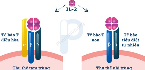 Để biến IL-2 thành một liệu pháp điều trị chống ung thư hiệu quả, bài toán lớn nhất cần giải quyết chính là làm sao để IL-2 ưu tiên kích hoạt tế bào T hiệu lực hơn là tế bào T điều hòa? Điều này đã dẫn đến sự quan tâm đối với cấu trúc của thụ thể IL-2 trên bề mặt tế bào T. Trải qua hơn một thập kỷ nghiên cứu, các nhà khoa học đã bất ngờ phát hiện ra rằng ở các tế bào T khác nhau có sự khác biệt về thụ thể IL-2. Đối với tế bào T điều hòa, thụ thể IL-2 của nó là loại tam trùng (trimeric) bao gồm chuỗi α-, β- và γ-. Trong khi đó, tế bào T non (Naive T cells) và tế bào tiêu diệt tự nhiên thì chứa thụ thể IL-2 nhị trùng (dimeric) bao gồm chuỗi β- và γ- (hình 2) [3].