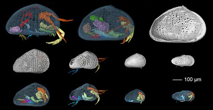 Các cơ quan mềm của Ostracoda trong hổ phách (màu đen trắng) so với mẫu vật hiện đại. (Ảnh: NIGPAS).