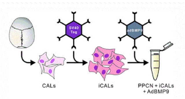 Sử dụng các tế bào vòm sọ hoặc xương sọ từ chủ thể có nghĩa là cơ thể không đào thải các tế bào đó. Protein BMP9 đã được chứng minh thúc đẩy sự phát triển của tế bào xương nhanh hơn so với các loại BMP khác. Quan trọng hơn, BMP9 xem ra cũng cải thiện quá trình hình thành mạch máu ở khu vực này. Khả năng cung cấp các tế bào xương sọ một cách an toàn có thể nhanh chóng tái tạo xương ở vị trí bị ảnh hưởng trong cơ thể trái ngược với việc sử dụng chúng để phát triển xương trong phòng thí nghiệm cần khoảng thời gian rất dài, hứa hẹn cho ra đời một phương pháp điều trị thân thiện hơn và không quá phức tạp để mở rộng quy mô trên các bệnh nhân.