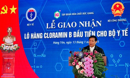Thực hiện ý kiến chỉ đạo của Thủ tướng Chính phủ, Ban chỉ đạo quốc gia phòng chống đại dịch bệnh COVID-19 và trước tình hình trên, Lãnh đạo Bộ Công thương đã có chỉ đạo quyết liệt các doanh nghiệp sản xuất trong nước tăng cường nghiên cứu, chuyển đổi sản xuất: khẩu trang, hóa chất… phục vụ công tác của ngành y tế và xuất khẩu. Theo Thứ trưởng, Công ty Cổ phần Tập đoàn Hóa chất Đức Giang là đơn vị đầu tiên trong ngành Hóa chất Việt Nam đã nghiên cứu, sản xuất thành công hóa chất Cloramin B và đã được Bộ Y tế cấp giấy chứng nhận đăng ký lưu hành chế phẩm diệt côn trùng, diệt khuẩn dùng trong lĩnh vực gia dụng và y tế. Thành công này đánh dấu một bước tiến mới trong công nghệ ngành hóa của Việt Nam.