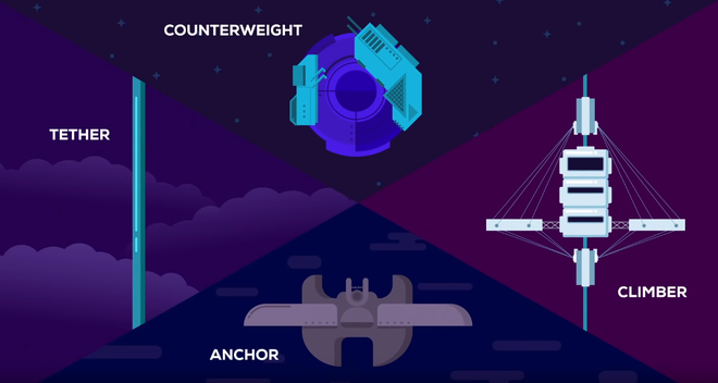 Về cơ bản, một hệ thống thang máy không gian có 4 phần:
